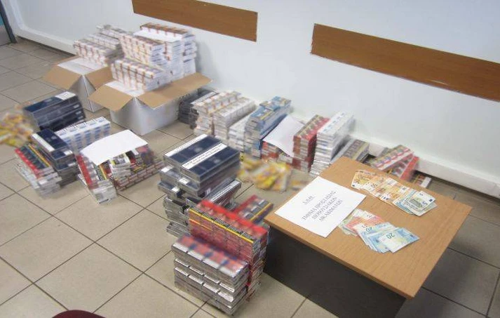 Ακολούθησαν έρευνες σε οικία του συλληφθέντα, αλλά και σε αποθηκευτικό χώρο που χρησιμοποιούσε ως «καβάτζα», όπου οι αστυνομικοί βρήκαν και κατέσχεσαν συνολικά 4.950 πακέτα τσιγάρων, δηλαδή 99.000 τεμάχια, καθώς και 213 συσκευασίες καπνού βάρους άνω των 10,5 κιλών.
