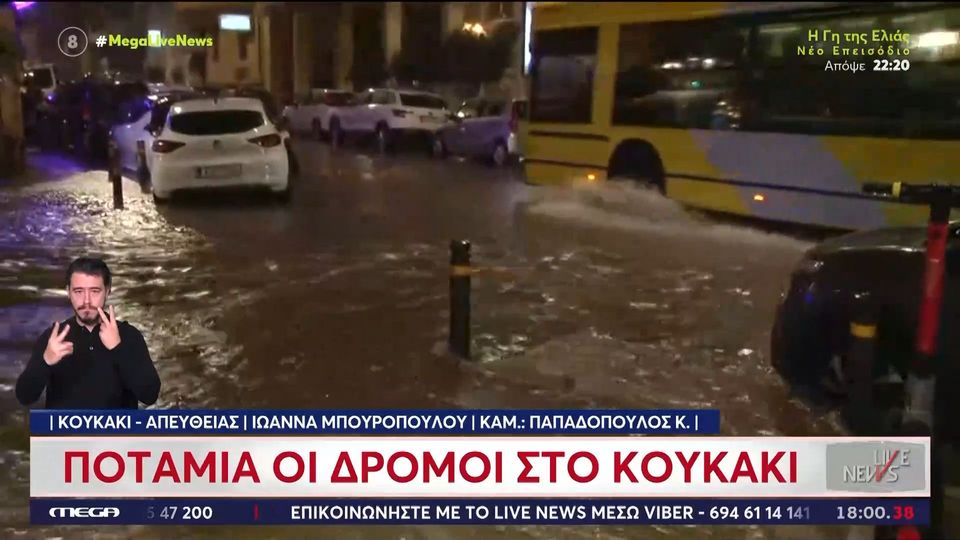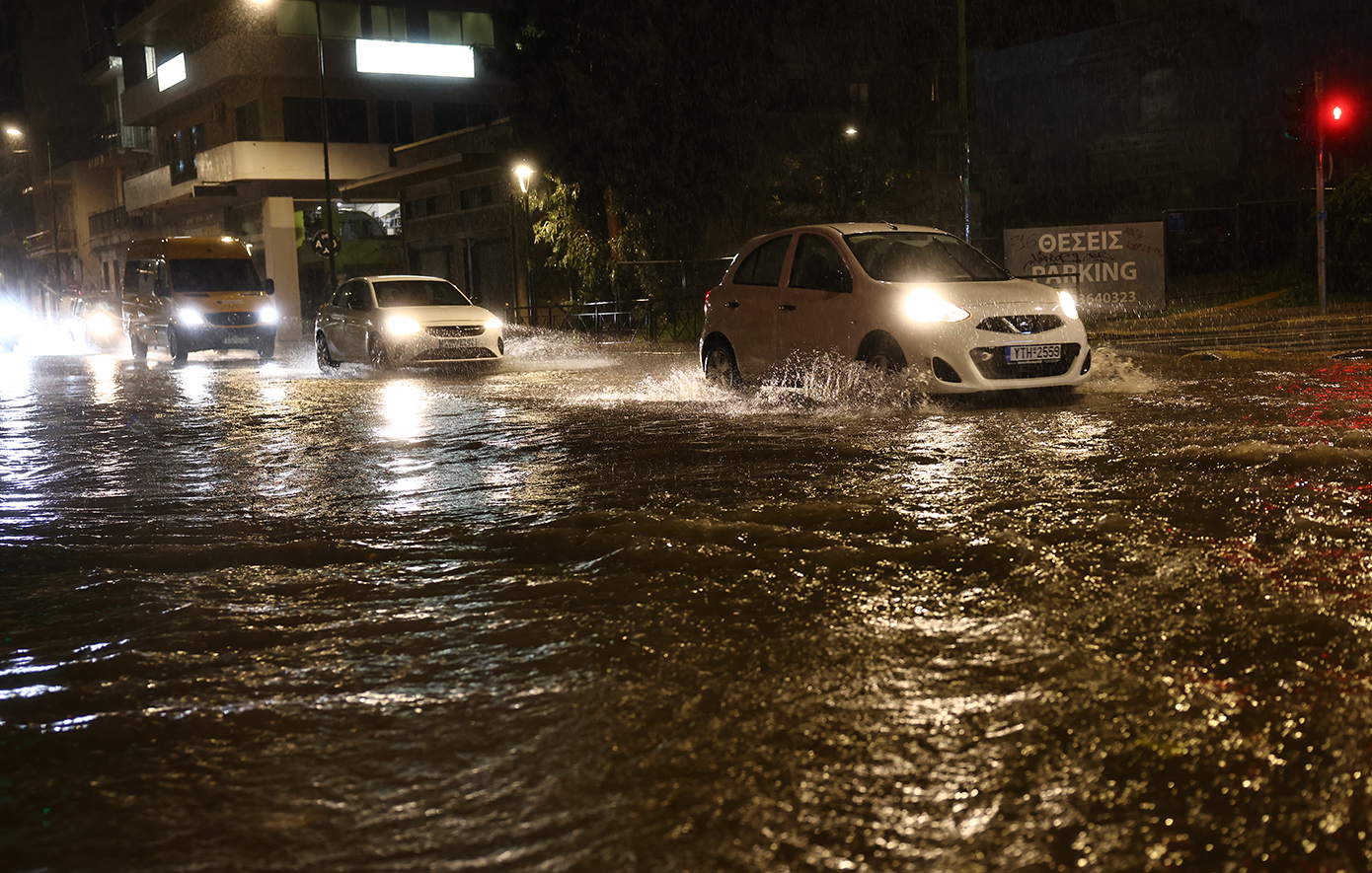 Η κακοκαιρία σαρώνει την Αττική, με αρκετές περιοχές να έχουν πλημμυρίσει και δρόμους να έχουν μετατραπεί σε ποτάμια, ενώ ο Ιλισσός υπερχειλίζει.