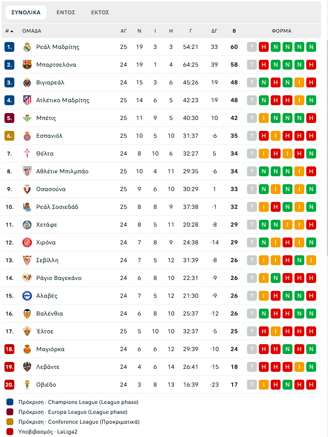Τα αποτελέσματα και το υπόλοιπο πρόγραμμα της 25ης αγωνιστικής: