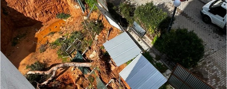 Ξηλωμένα καλώδια της ΔΕΗ μπροστά από γειτονικό πάρκινγκΌπως φαίνεται και από το φωτογραφικό υλικό που έχει στη διάθεσή του το TheTOC οι ζημιές είναι εκτεταμένες καθώς το πεζοδρόμιο κατέρρευσε, γκρεμίστηκε ολοσχερώς η αυλή ενός γειτονικού σπιτιού, κατέρρευσε πεύκο εντός του εργοταξίου παρασέρνοντας μαζί του καλώδια της ΔΕΗ, δύο μάντρες και δίκυκλα οχήματα (σκούτερ) που ήταν παρκαρισμένα πάνω σε αυτό.