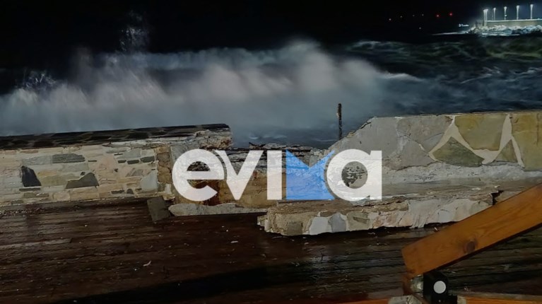 Η θάλασσα ξήλωσε προστατευτικά κάγκελα, διέλυσε τραπέζια και καρέκλες, κατέστρεψε καφετέριες, και εισέβαλε μέσα σε σπίτια, αφήνοντας πίσω της πλημμυρισμένα υπόγεια και τοίχους που κατέρρευσαν.
