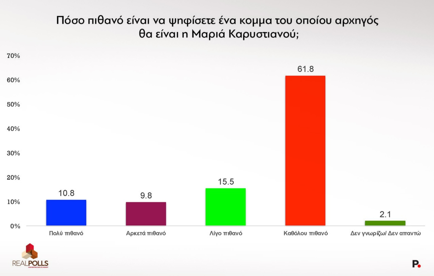 Μεταξύ άλλων, οι συμμετέχοντες ρωτήθηκαν και για το αν θα ψήφιζαν ένα κόμμα της Μαρίας Καρυστιανού, δίνοντας τις εξής απαντήσεις:
