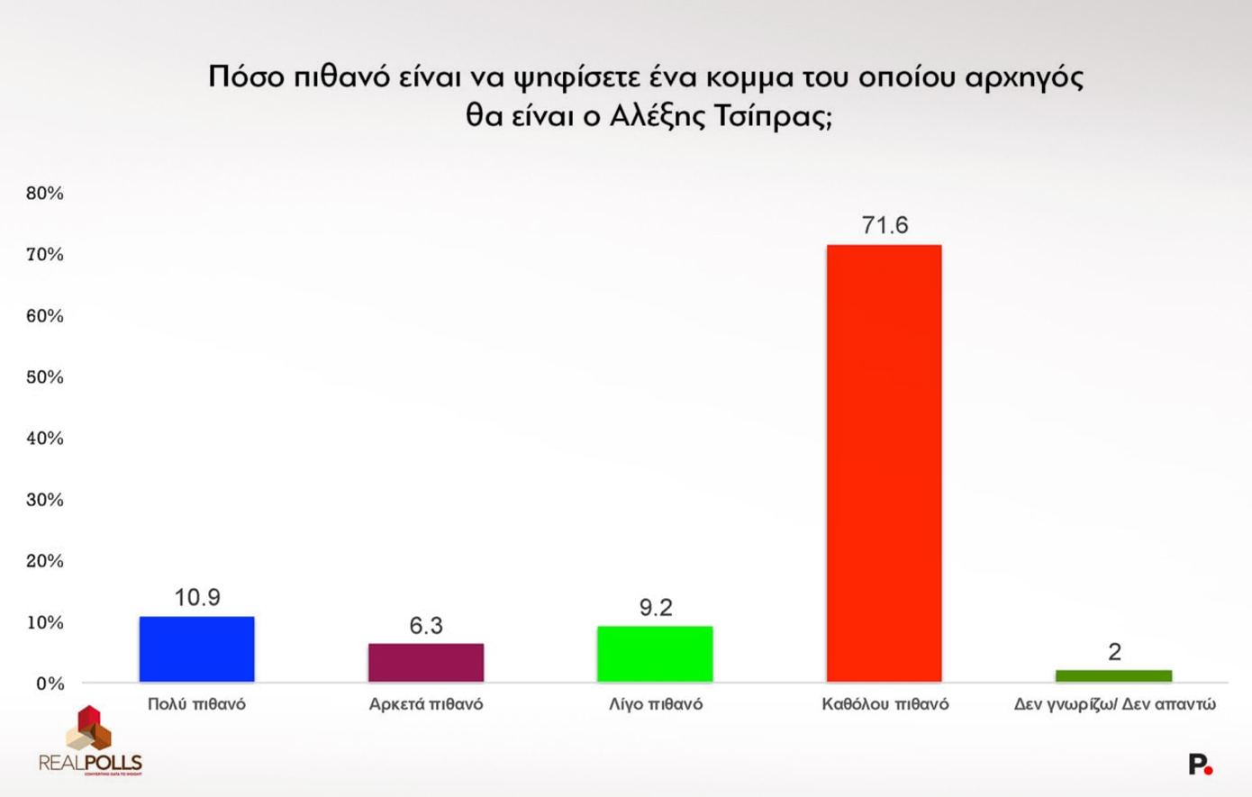 Ακόμη, τέθηκε και ερώτηση αν θα ψήφιζαν ένα κόμμα υπό τον Αλέξη Τσίπρα, με τους συμμετέχοντες να απαντούν: