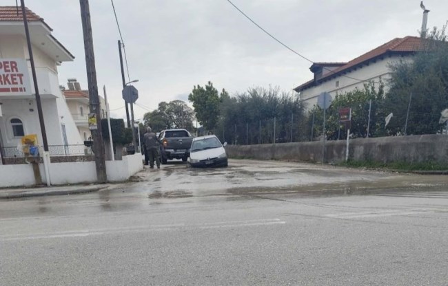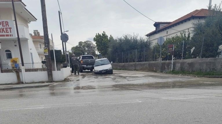 Σε τρύπα που άνοιξε στο οδόστρωμα από αγωγό ύδρευσης που έσπασε, έπεσε, διερχόμενο αυτοκίνητο, στην περιοχή της παλιάς "Άνοιξης" στην Ιαλυσό.