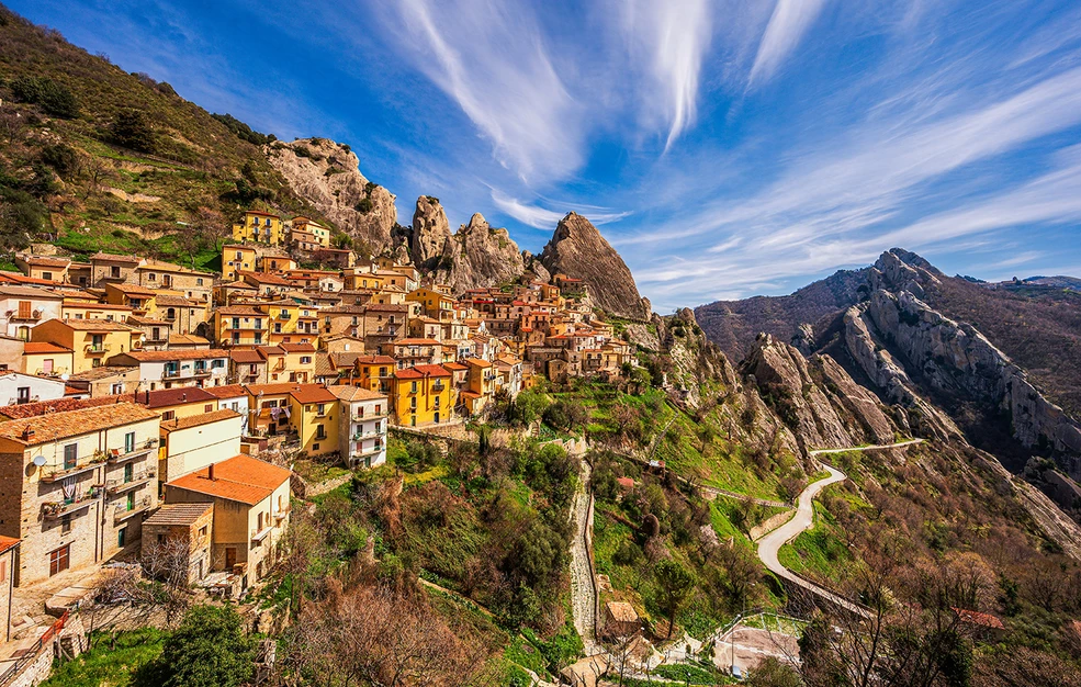 Σκαρφαλωμένο ανάμεσα σε θεαματικούς ασβεστολιθικούς βράχους, το Castelmezzano μοιάζει περισσότερο με σκηνικό κινηματογραφικής φαντασίας παρά με πραγματικό χωριό.